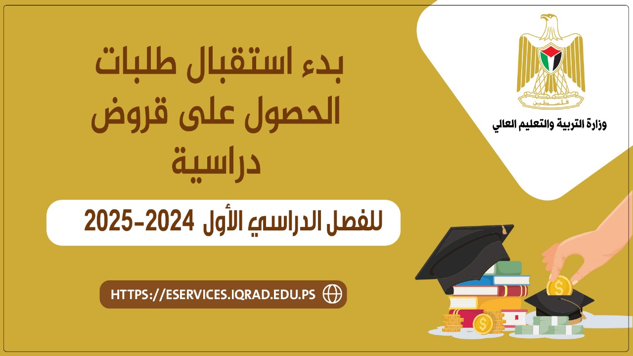 رام الله 25-8-2024 وفا- أعلن صندوق إقراض طلبة مؤسسات التعليم العالي في فلسطين، اليوم الأحد، عن بدء استقبال طلبات الحصول على قروض دراسية للفصل الأول من العام الدراسي 2024-2025، وذلك لطلبة البكالوريوس والدبلوم المتوسط في مؤسسات التعليم العالي الفلسطينية.