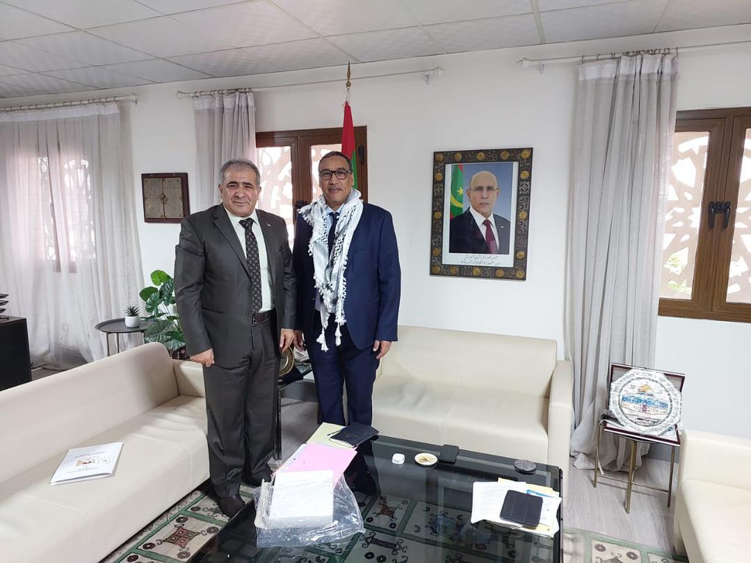 خلال اللقاء، سلم السفير الفلسطيني رسالة تهنئة للوزير الموريتاني من نظيره الفلسطيني أمجد برهم، وزير التربية والتعليم العالي والبحث العلمي.