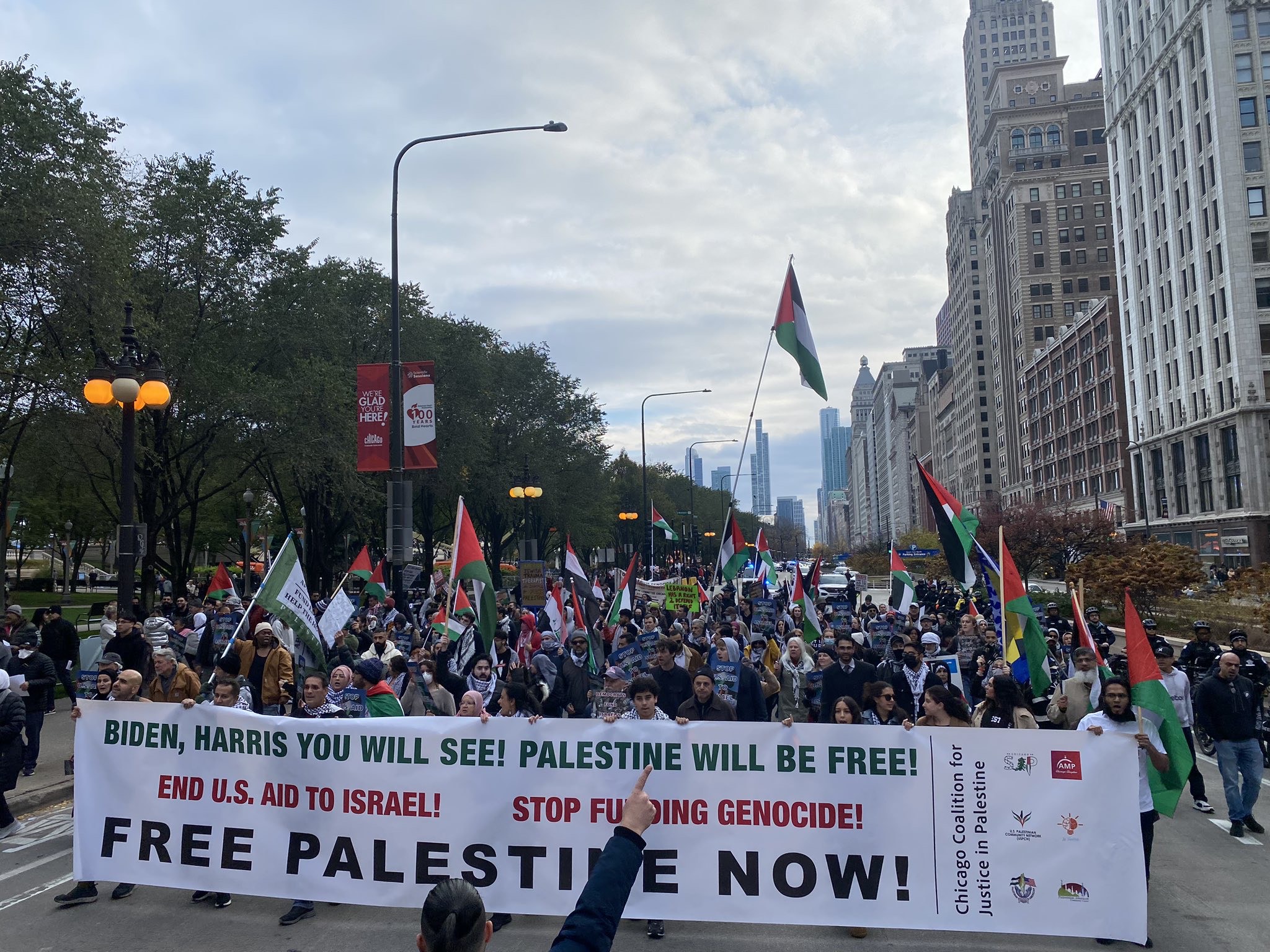 ويواصل أعضاء منظمات حقوقية وأبناء الجاليتين العربية والإسلامية، ونشطاء السلام، في تنظيم مسيرات أسبوعية في شيكاغو أحد أهم المدن الأميركية منذ تشرين الأول/ أكتوبر 2023، للمطالبة بوقف "الإبادة الجماعية" في قطاع غزة وحشد الدعم للقضية الفلسطينية.