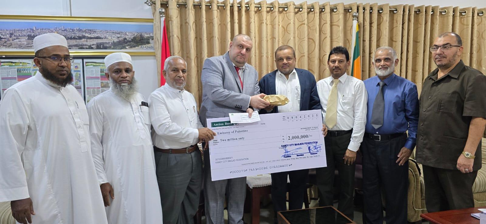 كولومبو 8-4-2025 وفا- تلقت سفارة دولة فلسطين لدى سريلانكا، صباح اليوم الثلاثاء، مبلغا ماليا بقيمة مليوني روبية من اتحاد مساجد محافظة كاندي في سريلانكا، في إطار الجهود التي تبذلها لتوفير الدعم والمساندة لأبناء شعبنا في قطاع غزة، الذي يتعرض لأبشع الجرائم ضد الإنسانية على يد قوات الاحتلال الإسرائيلي منذ أكتوبر 2023.