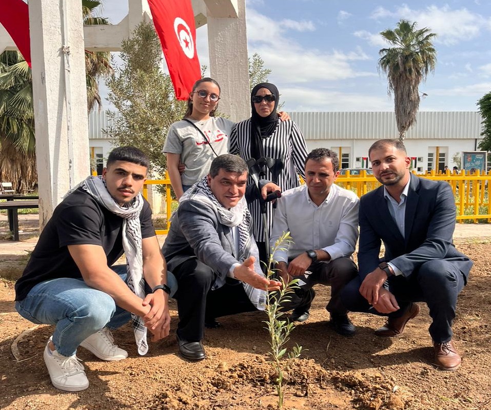 تونس 5-5-2025 وفا- شاركت اللجنة التحضيرية للاتحاد العام لطلبة فلسطين – فرع تونس، في فعالية رمزية جرى خلالها غرس شجرة زيتون تم إحضارها من القدس المحتلة، في رحاب الجامعة التي ارتقى فيها الشهيد التونسي فارس خالد.