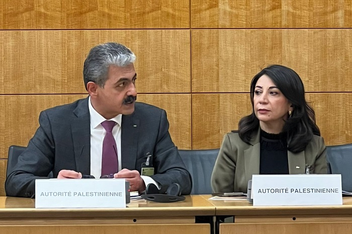 وضم الوفد الفلسطيني، وكيل وزارة العدل أحمد ذبالح، وسفيرة فلسطين لدى فرنسا هالة أبو حصيرة، وسكرتير ثالث محمد الخواجة.