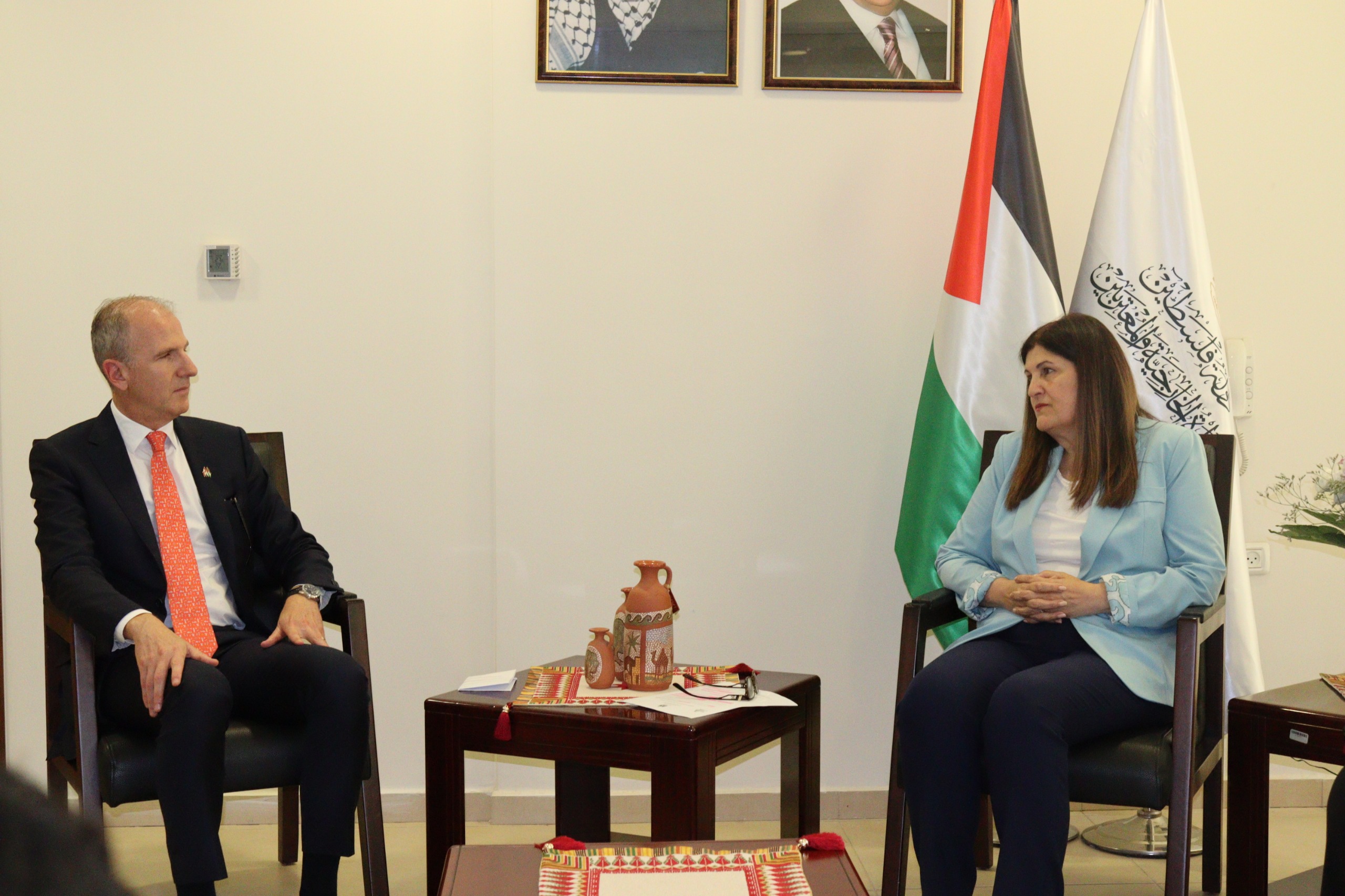 رام الله 9-7-2025 وفا- استقبلت وزيرة الخارجية والمغتربين، فارسين اغابكيان شاهين، اليوم الخميس، في مقر الوزارة بمدينة رام الله، رئيس مكتب تمثيل كندا لدى فلسطين، جراهم داتلز، بحضور مديرة الإدارة العامة للأمريكيتين والكاريبي سعاد صبح.