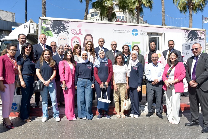 رام الله 1-10-2025 وفا- نظم مستشفى الأوغستا فكتوريا-المطّلع، بالشراكة مع بلدية رام الله، اليوم الأربعاء، فعاليات الحملة السنوية للتوعية بسرطان الثدي، تحت شعار "فحصك حياتك"، في عيادات مستشفى المطلع برام الله.