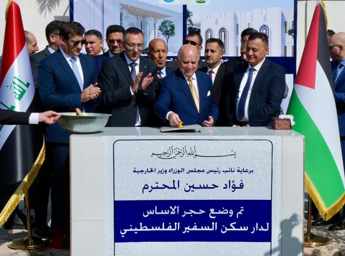 وخلال اللقاء، وضع الوزير حسين، إلى جانب السفير الرويضي، حجر الأساس لبيت إقامة السفير الفلسطيني داخل مقر السفارة الفلسطينية في بغداد، بحضور عدد من كبار المسؤولين العراقيين، وممثلي السلك الدبلوماسي والإعلام المحلي، والذي يعد خطوة رمزية وسياسية لتعزيز الحضور الفلسطيني في العراق.