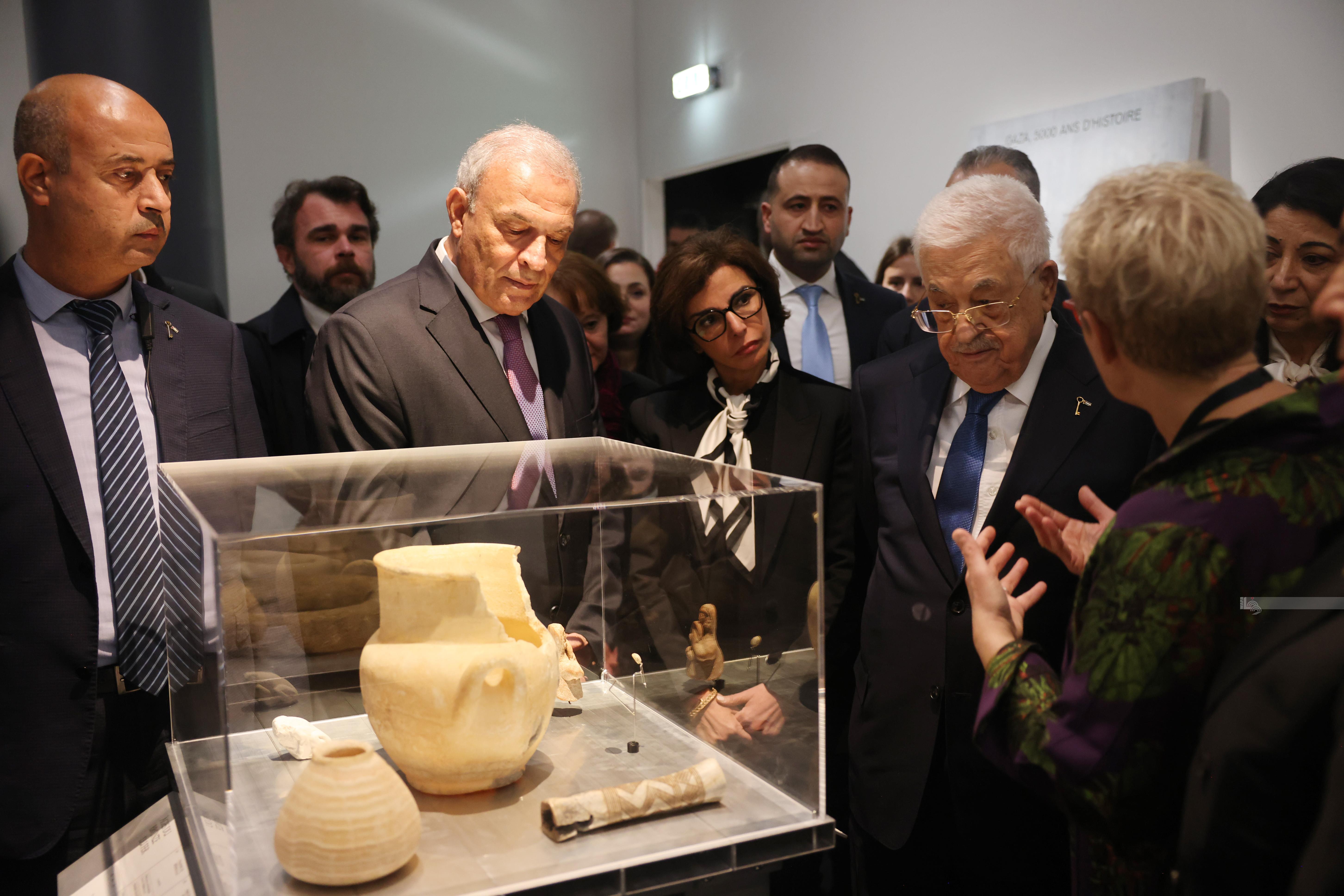 باريس 12-11-2025 وفا- زار رئيس دولة فلسطين محمود عباس، والوفد المرافق له، معرض "كنوز منقذة من غزة"، المقام في قاعات معهد العالم العربي، وذلك على هامش زيارته الرسمية إلى العاصمة الفرنسية باريس.