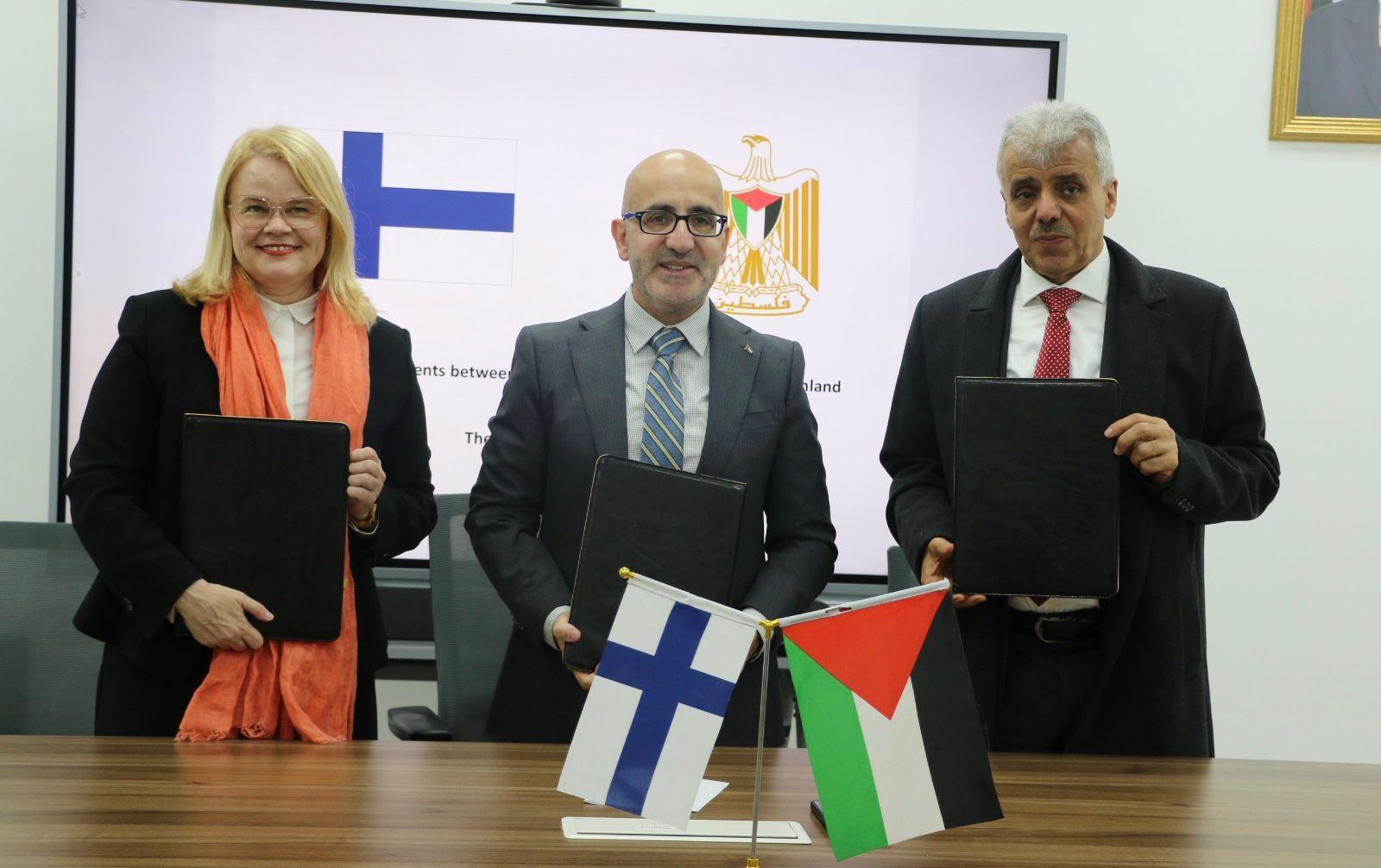 وحضر مراسم التوقيع، وزير التخطيط والتعاون الدولي اسطيفان سلامة، ووزير التربية والتعليم العالي أمجد برهم، وسفيرة فنلندا لدى دولة فلسطين تاريا كانجاسكورتي.