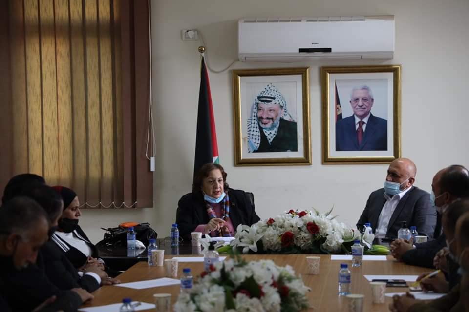 جنين 16-12-2020 وفا- بحث محافظ جنين أكرم الرجوب، اليوم الأربعاء، مع وزيرة الصحة مي كيلة، آخر مستجدات الوضع الوبائي في ظل ارتفاع منحى الإصابات ونسبة الوفيات بفيروس كورونا المستجد في المحافظة .