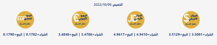 رام الله 6-10-2022 وفا- جاءت أسعار العملات مقابل الشيقل الإسرائيلي، اليوم الخميس، حسب سلطة النقد، على النحو التالي: