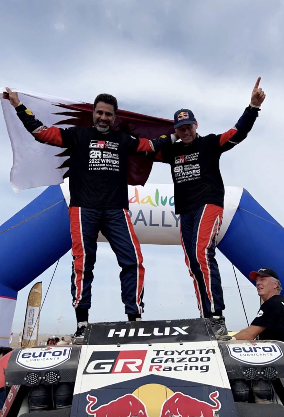 مدريد 23-10-2022 وفا- تُوّج القطري ناصر العطية، اليوم الأحد، بلقب بطولة العالم للراليات الصحراوية - رايد 2022، بعد حلوله ثانيا في الجولة الأخيرة من بطولة العالم للراليات التي جرت في الأندلس جنوب اسبانيا.