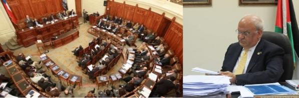 رام الله 7-7-2020 وفا- ثمن أمين سر اللجنة التنفيذية لمنظمة التحرير الفلسطينية صائب عريقات، قرار مجلس الشيوخ التشيلي بمنع دخول منتوجات المستوطنات الاسرائيلية الى تشيلي.