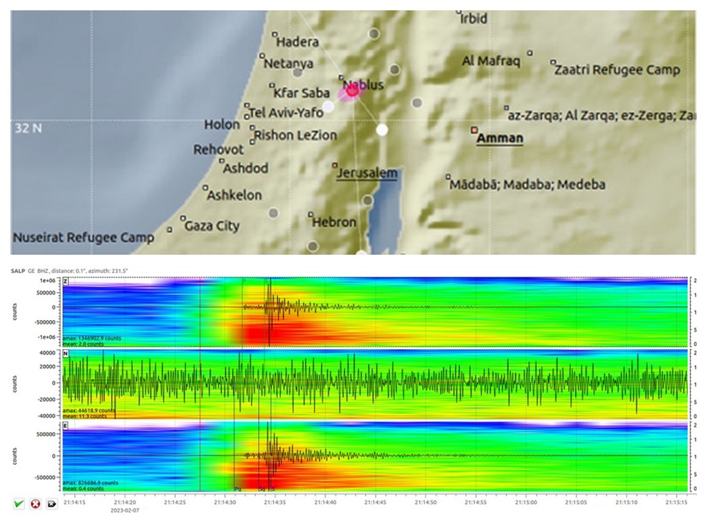 رام الله 7-2-2023 وفا- ضربت هزة أرضية، الليلة، فلسطين، وشعر بها المواطنون في عدة محافظات بينها رام الله والبيرة ونابلس والقدس المحتلة.