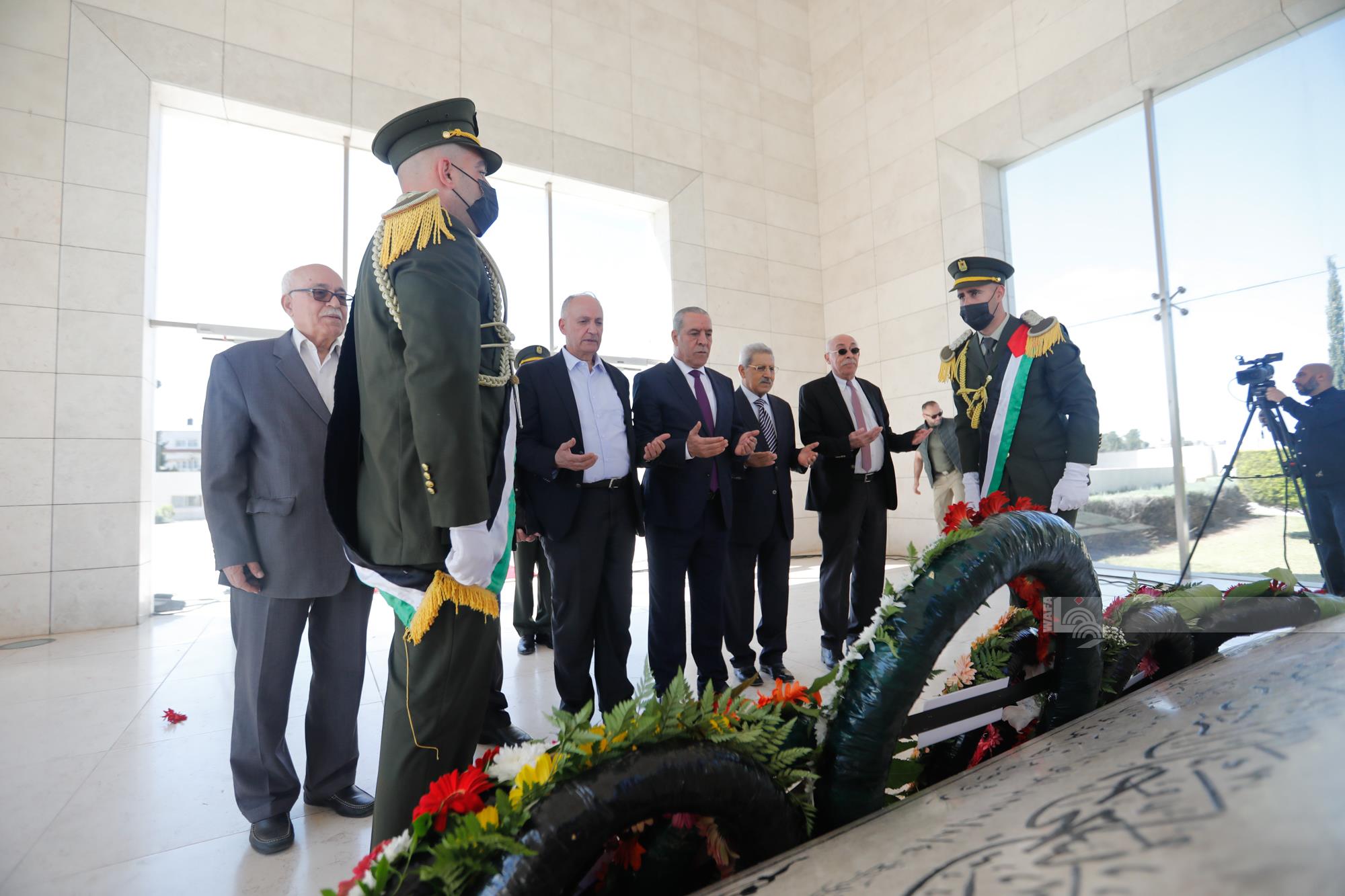 وشارك في وضع الإكليل أعضاء اللجنة التنفيذية واصل أبو يوسف وصالح رأفت وفيصل عرنكي ورمزي رباح.