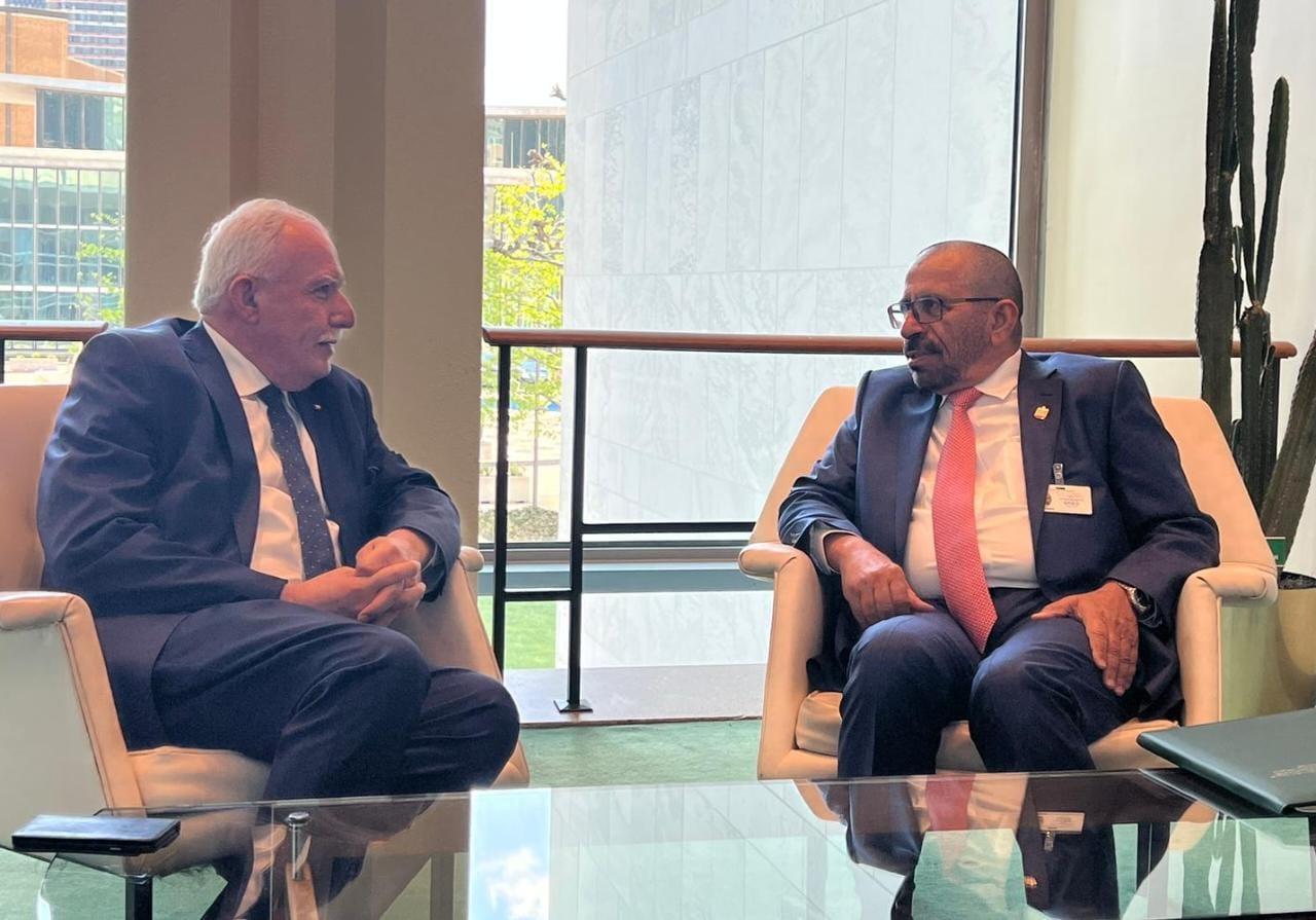 نيويورك 24-4-2023 وفا- التقى وزير الخارجية والمغتربين رياض المالكي، اليوم الإثنين، وزير الدولة للشؤون الخارجية الإماراتي خليفة شاهين المرر، والوزير المناوب لوزارة خارجية الغابون، هيرمان ايمونغولت، كلا على حده، وذلك خلال زيارته الى نيويورك للمشاركة في جلسة مجلس الأمن على المستوى الوزاري، والمخصصة للشرق الأوسط وقضية فلسطين.