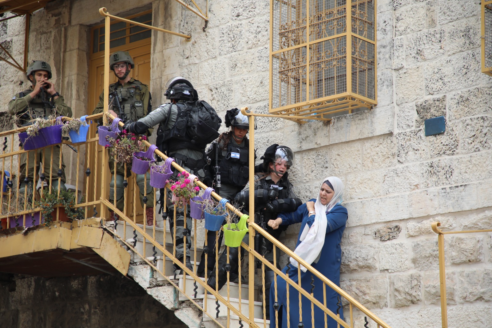 وذكر مراسل "وفا"، أن قوات الاحتلال أطلقت قنابل الغاز صوب المواطنين، واعتدت على عضو مجلس بلدية الخليل ليانا أبو عيشة، أثناء محاولتها فتح مبنى البلدية القديم المهدد بالاستيلاء عليه لصالح المستوطنين، حيث أرغمها الجنود على نزول درج المبنى بالقوة، واعتدَوا عليها، ما تسبب بإصابتها برضوض وكدمات.