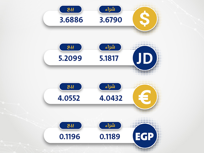 سعر صرف الدولار: شراء: 67: 3 بيع: 3.68 شيقل