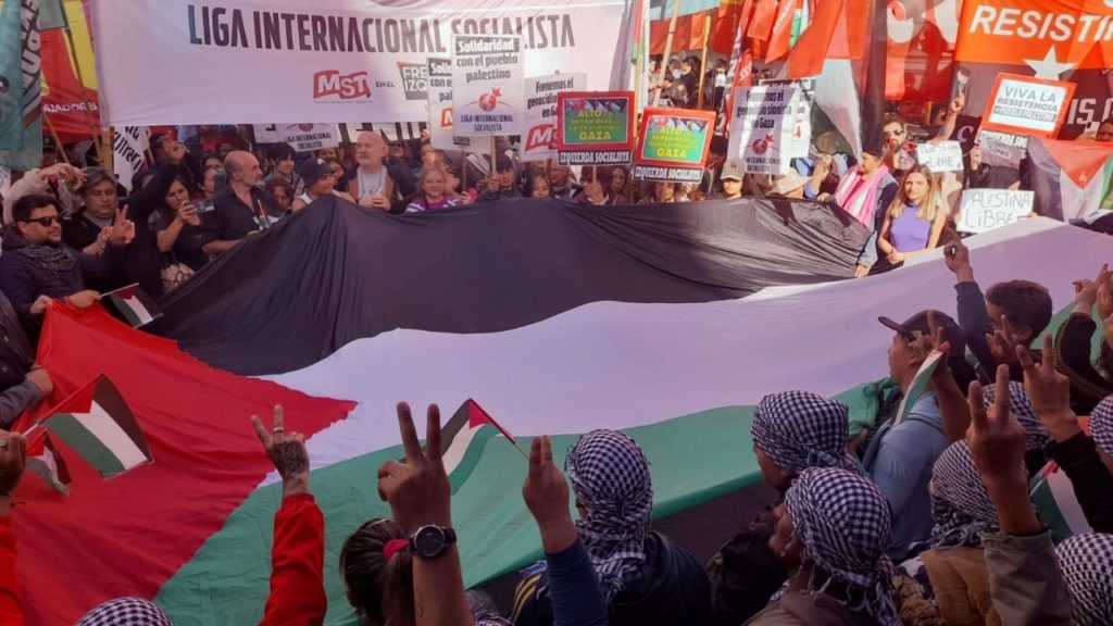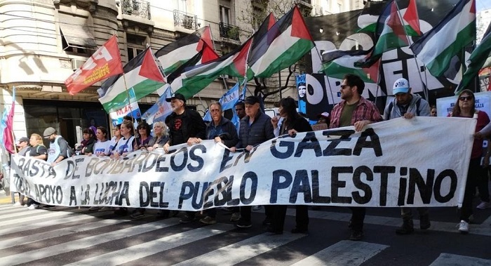 وسبق الوقفة، تظاهرة حاشدة جابت شوارع العاصمة الأرجنتينية، وصولا إلى مقر السفارة الفلسطينية.