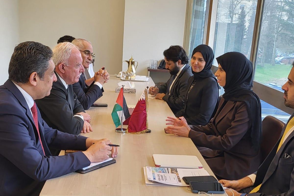 جنيف 27-2-2024 وفا- التقى وزير الخارجية والمغتربين في حكومة تسيير الأعمال رياض المالكي، مع وزيرة الدولة للتعاون الدولي في الخارجية القطرية لولوة بنت راشد الخاطر، على هامش أعمال الدورة الـ55 لمجلس حقوق الإنسان في جنيف.