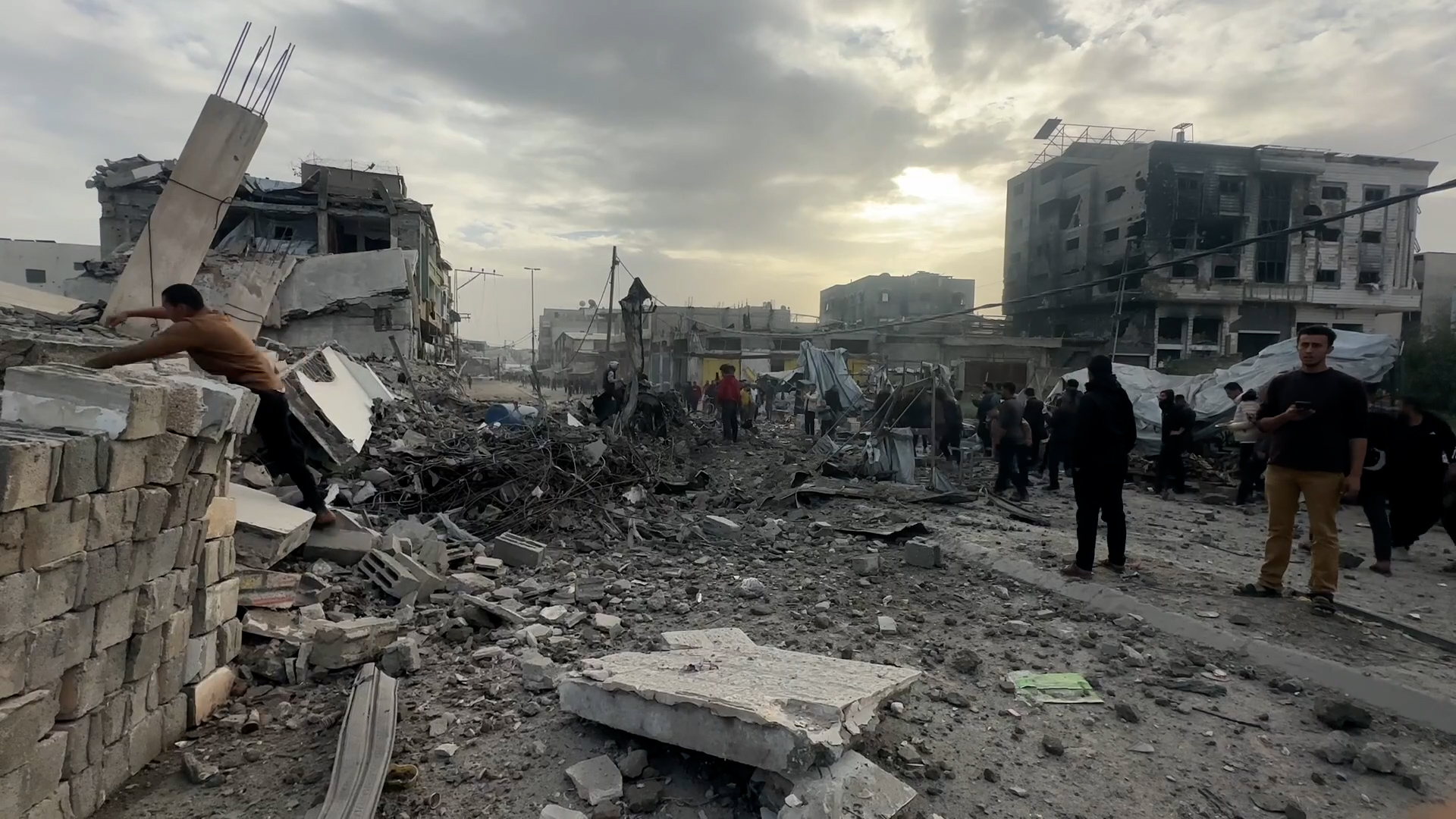 تفقد أنقاض مبنى قصفه الاحتلال في حي الزيتون