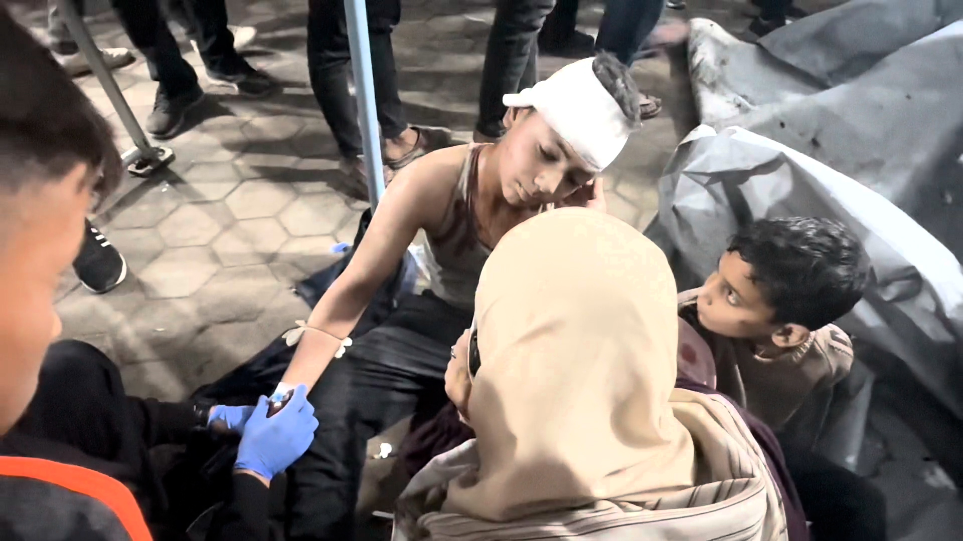 نقل جرحى بينهم أطفال بقصف إسرائيلي إلى مجمع ناصر الطبي في خان يونس جنوب قطاع غزة
