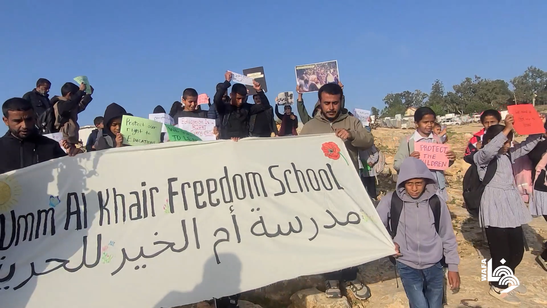- الاحتلال يقمع وقفة لطلبة "أم الخير" في مسافر يطا ويمنعهم من الوصول إلى مدرستهم لليوم السابع