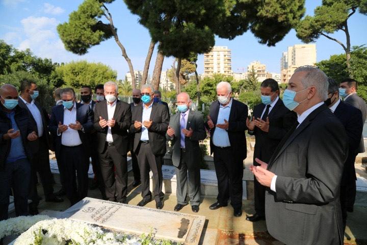 ووضع السفير دبور اكليلا من الزهور باسم رئيس دولة فلسطين محمود عباس على الضريح.