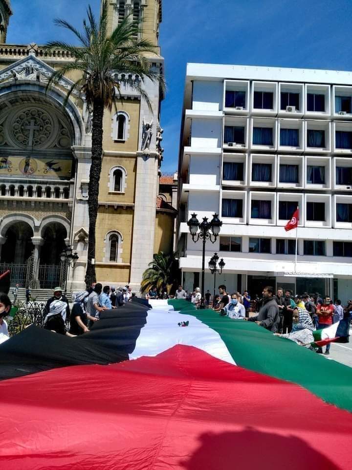 تونس 15-5-2021 وفا- شهدت جل المدن التونسية اليوم السبت، مظاهرات حاشدة تضامنا مع شعبنا، ورفضا للعدوان الإسرائيلي المتواصل، وذلك بمشاركة وحضور أعضاء إقليم حركة فتح بتونس، وأبناء الجالية، واتحاد طلبة وعمال فلسطين بتونس.