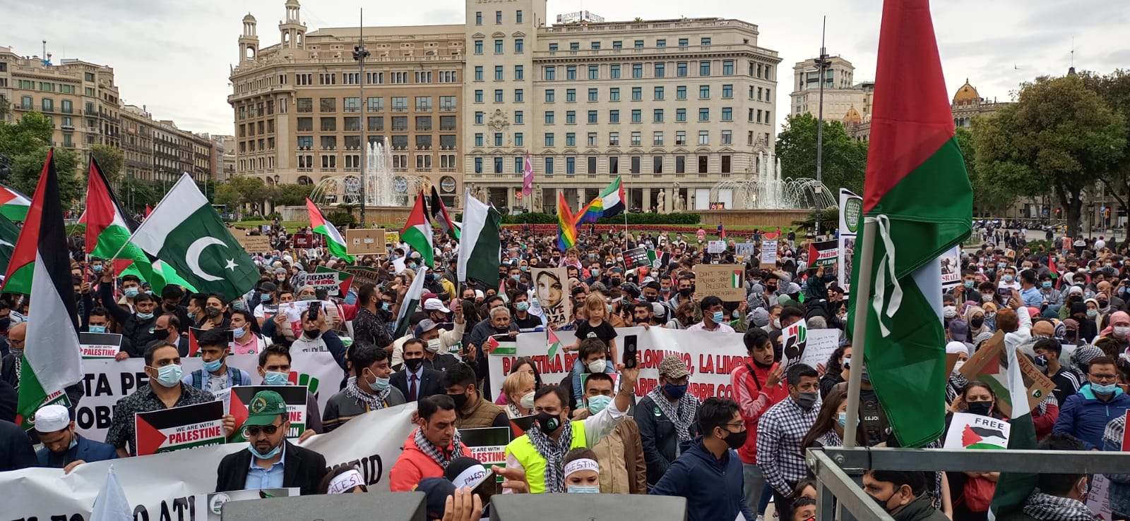 وشهدت ساحة "plaza Cataluña" في برشلونة، اليوم الاثنين، وقفة تضامن مع شعبنا دعت لها الأحزاب والنقابات العمالية، والجالية الباكستانية، والجاليات العربية.