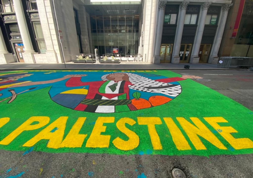 لوحة فنية تضامنية مع شعبنا أمام القنصلية الإسرائيلية في سان فرانسيسكو