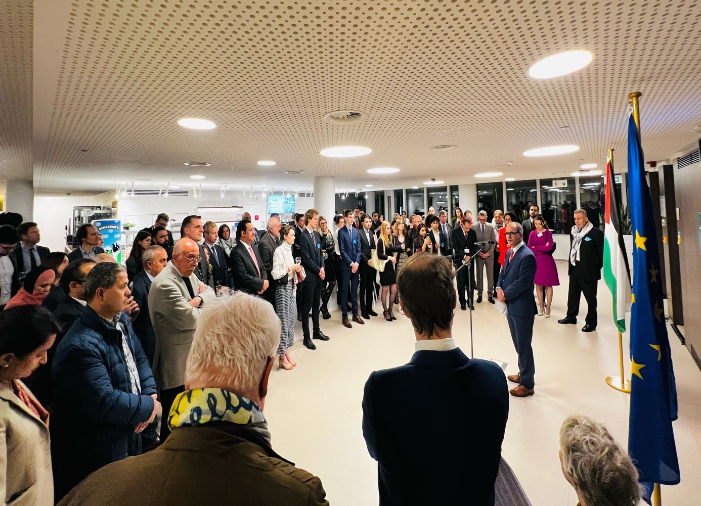 وشارك في الفعالية التضامنية ممثلين عن الدول الاعضاء في الاتحاد الاوروبي، وممثل عن بعثة جامعة الدول العربية في بروكسل، وممثل عن الامم المتحدة، والسفراء العرب والأجانب المعتمدين لدى الاتحاد الاوروبي، ومفوض الاتحاد الاوروبي لعملية السلام في الشرق الاوسط سڤين كوبمانس، الى جانب عضو اللجنة التنفيذية لمنظمة التحرير الفلسطينية ورئيس دائرة شؤون المغتربين، فيصل عرنكي، ومسؤول ملف أوروبا بالدائرة احمد عباس، والهيئة الادارية للجاليات الفلسطينية في أوروبا، والسفير عادل عطية، والسفير عبد الرحيم الفرا، ورئيس جاليتنا في بلجيكا، عضو المجلس الوطني عماد بدوي،.