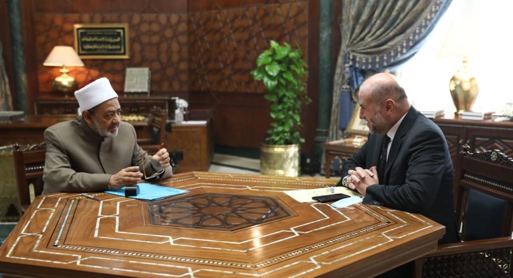 القاهرة 28-3-2022 وفا- بحث قاضي قضاة فلسطين، مستشار الرئيس للشؤون الدينية والعلاقات الإسلامية محمود الهباش، مع شيخ الأزهر الشريف الإمام الأكبر أحمد الطيب، اليوم الإثنين، في مقر مشيخة الأزهر بالعاصمة المصرية القاهرة، الأوضاع في القدس والمسجد الأقصى، في ظل استمرار الاعتداءات اليومية من قبل المستوطنين وشرطة الاحتلال.