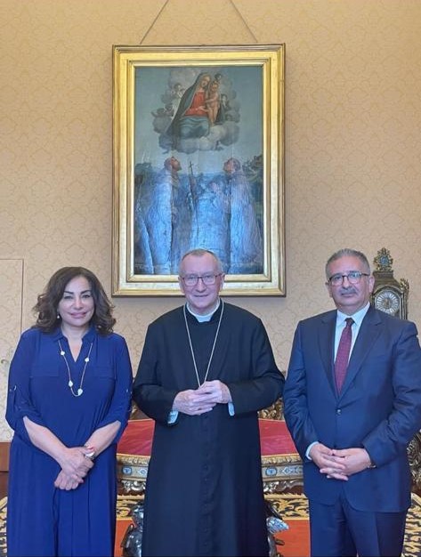 الفاتيكان 11-6-2022 وفا- أطلع سفير دولة فلسطين لدى الكرسي الرسولي عيسى قسيسية، وسفيرة جامعة الدول العربية  إيناس مكاوي، رئيس وزراء الفاتيكان الكاردينال بيترو بارولين، على الانتهاكات الإسرائيلية المتواصلة بحق شعبنا وقضيته.