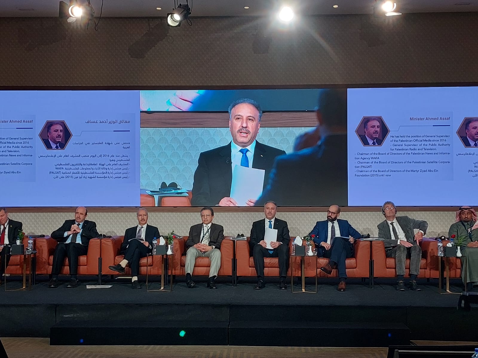 تونس 14-1-2023 وفا- ترأس المشرف العام على الإعلام الرسمي الوزير أحمد عساف، اليوم السبت، إدارة الجلسة الختامية لمؤتمر الإعلام العربي المنعقد في العاصمة التونسية، بعنوان "خطة العمل والاستراتيجية المقترح اتباعها عربيا في المجالين التكنولوجي والتشريعي".