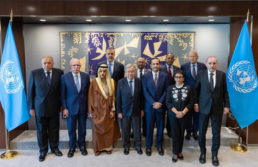 نيويورك 29-11-2023 وفا- التقى أعضاء اللجنة الوزارية المكلفة من القمة العربية الإسلامية المشتركة غير العادية، برئاسة وزير خارجية المملكة العربية السعودية الأمير فيصل بن فرحان بن عبدالله، اليوم الأربعاء، الأمين العام للأمم المتحدة أنطونيو غوتيريش، بمقر الأمم المتحدة في نيويورك.