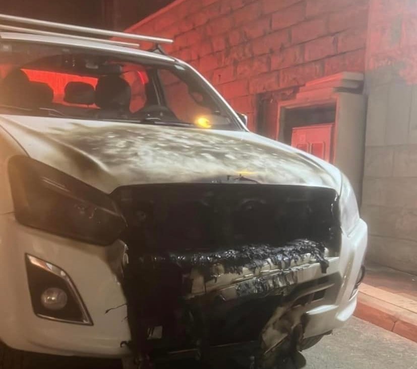 القدس 17-7-2023 وفا- أحرق مستوطنون، الليلة الماضية، أربع مركبات وخطّوا شعارات عنصرية في قرية أبو غوش، غرب القدس المحتلة.