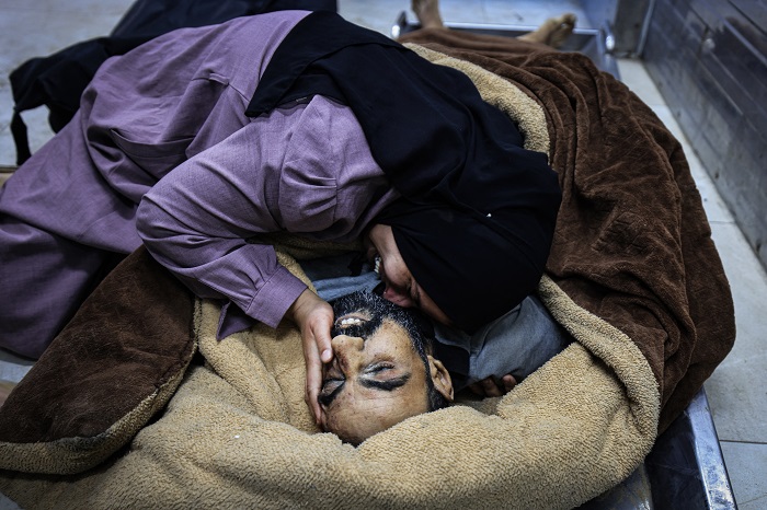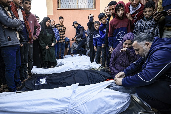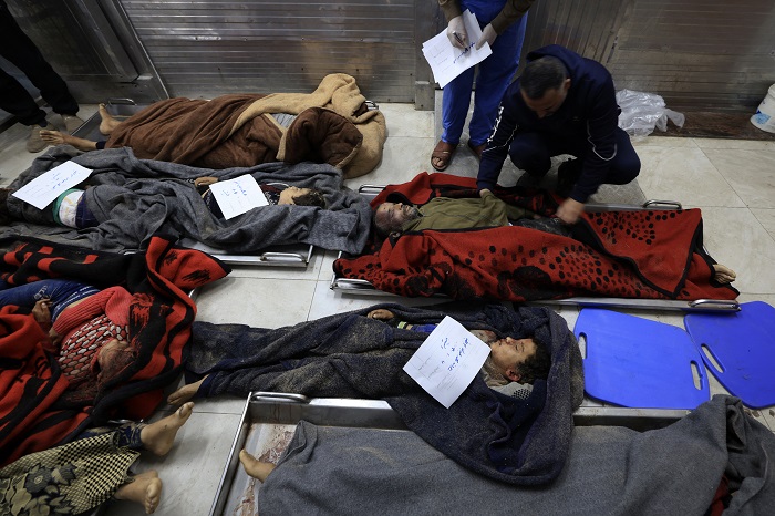 وداع الشهداء في مجمع ناصر الطبي في خان يونس جنوب قطاع غزة (أ ف ب)