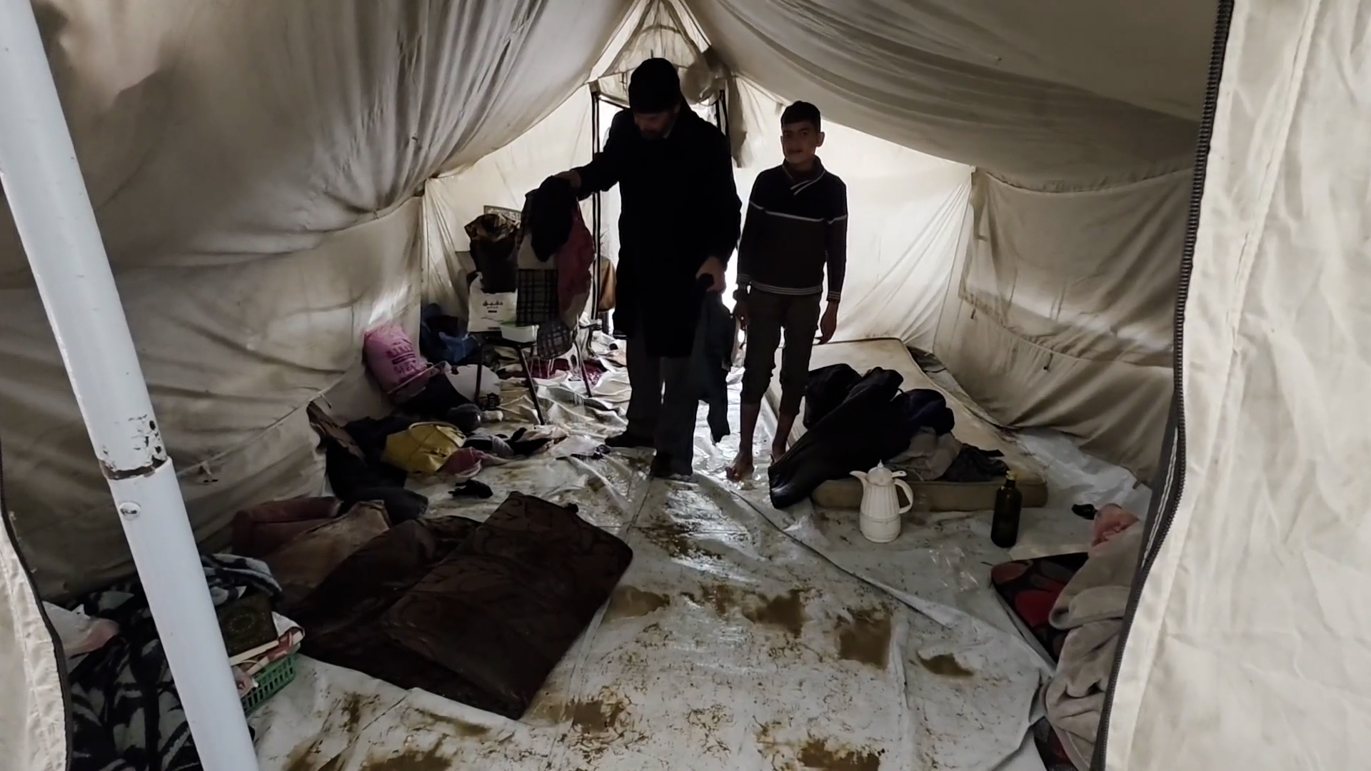 المنخفض الجوي يفاقم معاناة النازحين في خان يو ...
