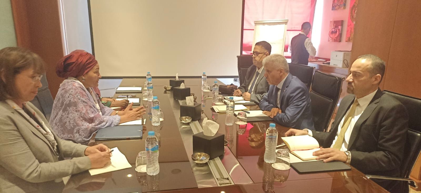 القاهرة 18-8-2024 وفا- بحث وزير التربية والتعليم العالي أمجد برهم، اليوم الأحد، مع نائب الأمين العام للأمم المتحدة أمينة محمد، الوضع الراهن في الضفة وغزة وانعكاسه على الوضع التعليمي، إضافة لأوضاع الطلبة الفلسطينيين في جمهورية مصر العربية، والتدخلات الممكن القيام بها للتعامل مع الأزمة الناشئة عن تشريدهم وعائلاتهم جرّاء العدوان الإسرائيلي المتواصل على القطاع.
