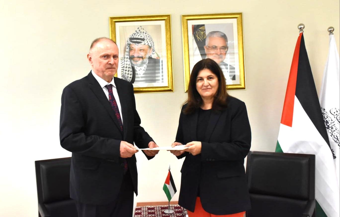 شاهين تتسلم نسخة من أوراق اعتماد سفير هنغاريا الجديد لدى دولة فلسطين