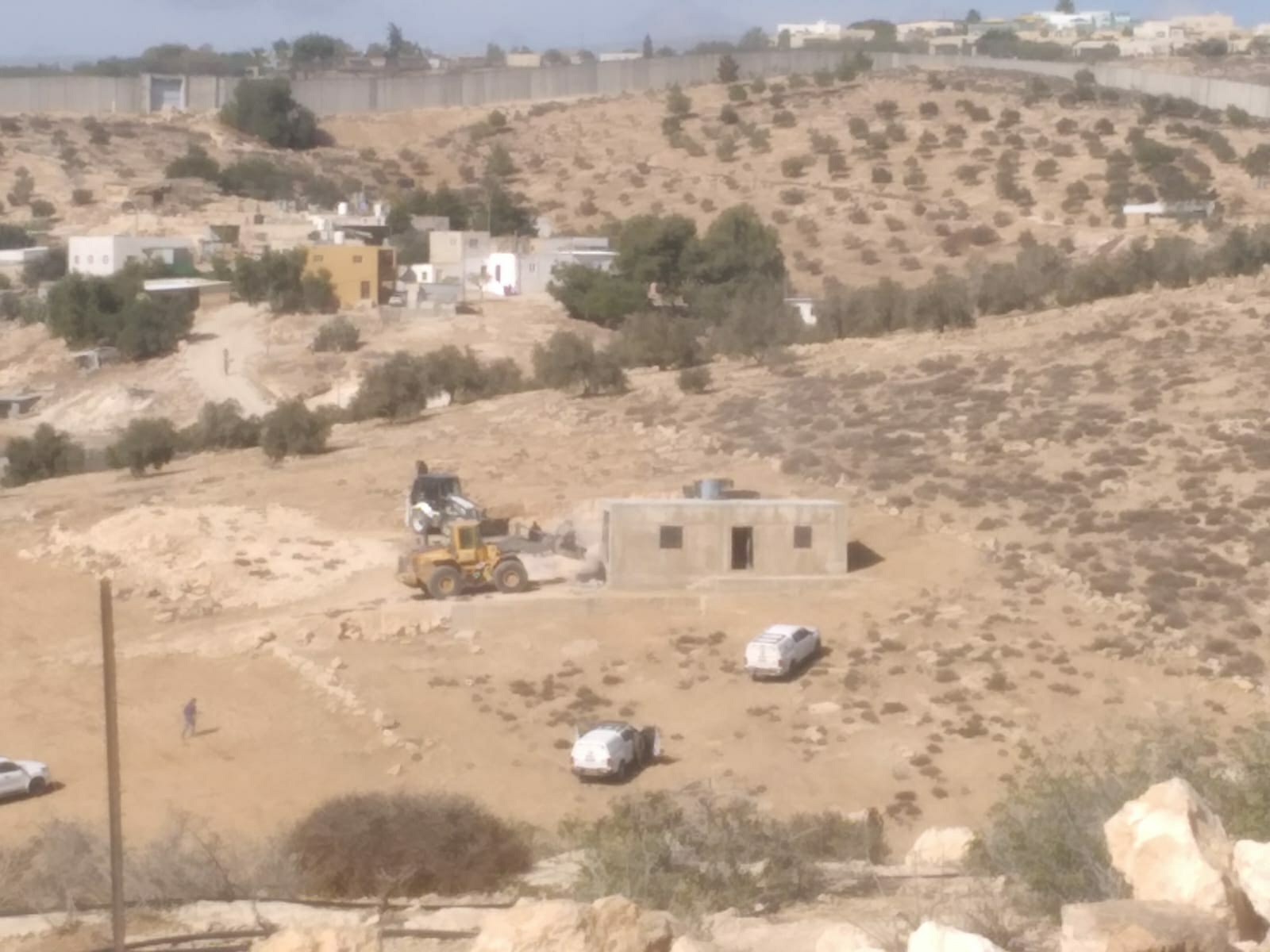 كما هدمت بركسات زراعية تزيد مساحتها على 350 مترا مربعا، وبئرا للمياه، وأتلفت عددا من الأشجار المثمرة في منطقتي "أم سدرة"، و"التينة"، تعود للمواطنين حجة الهوارين، وجميل زغارنة.