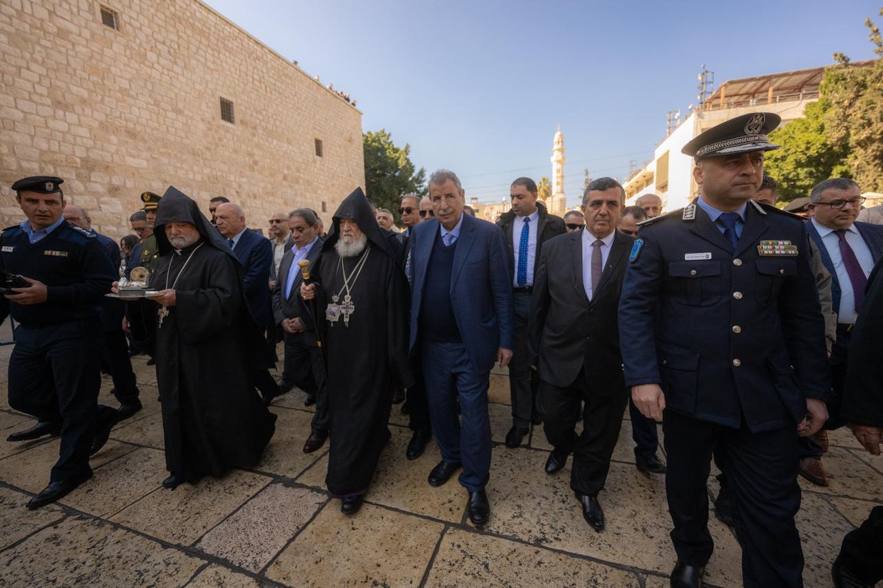 وممثلاً عن الرئيس محمود عباس، استقبل عضو اللجنة التنفيذية لمنظمة التحرير، رئيس اللجنة الرئاسية العليا لمتابعة شؤون الكنائس في فلسطين رمزي خوري واعضاء اللجنة، رئيس أساقفة الكنيسة الأرمنية الأرثوذكسية في القدس المطران سيفان غاربيان.