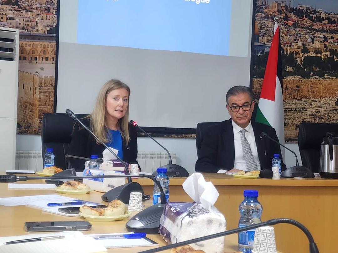 وترأس الاجتماع، وزير التخطيط والتعاون الدولي وائل زقوت، والقنصل البريطاني العام في القدس هيلين وينترتون.