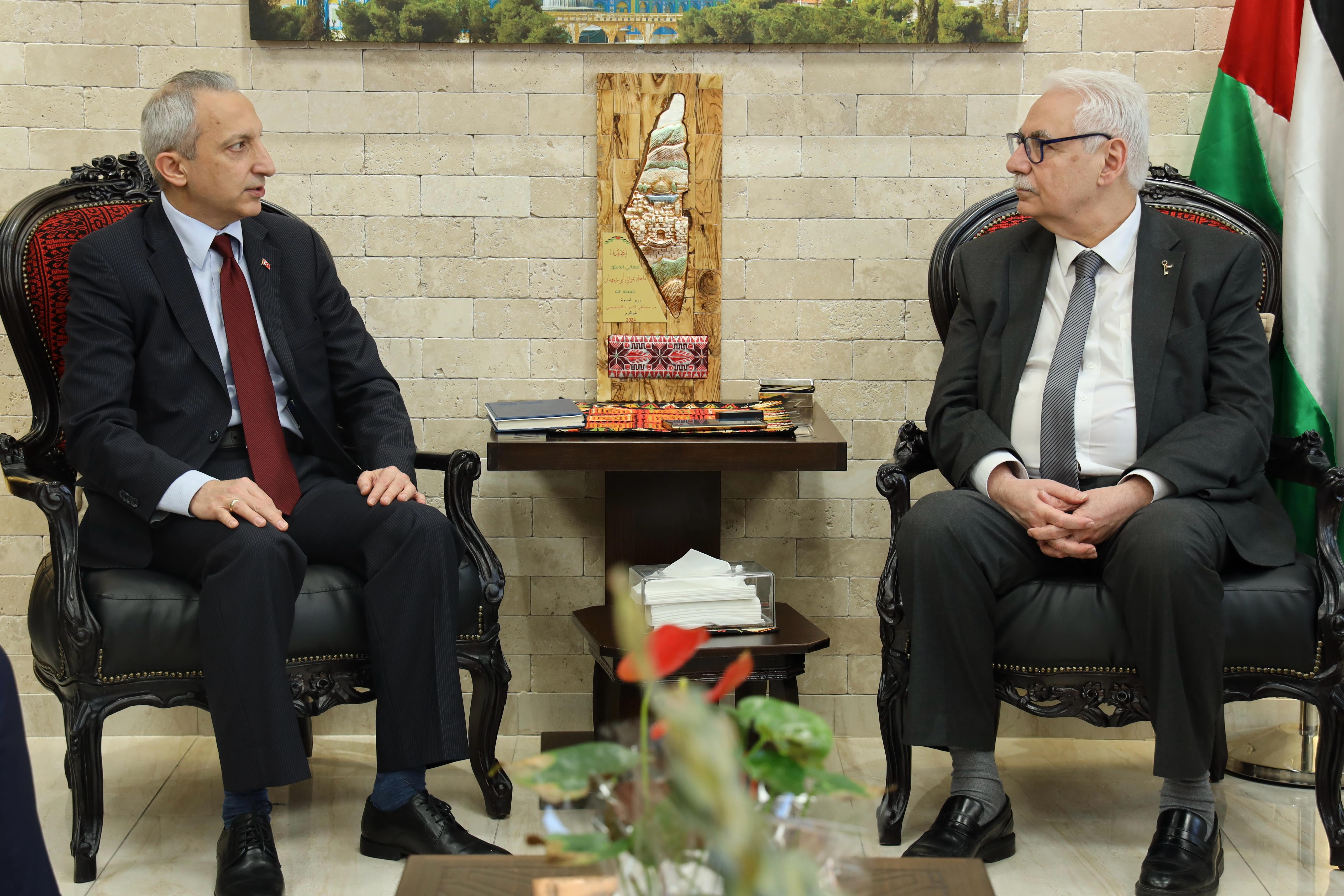 رام الله 17-3-2025 وفا- بحث وزير الصحة ماجد أبو رمضان، اليوم الاثنين، مع القنصل التركي العام في القدس إسماعيل كوبان أوغلو، سبل تعزيز التعاون المشترك في المجال الصحي.