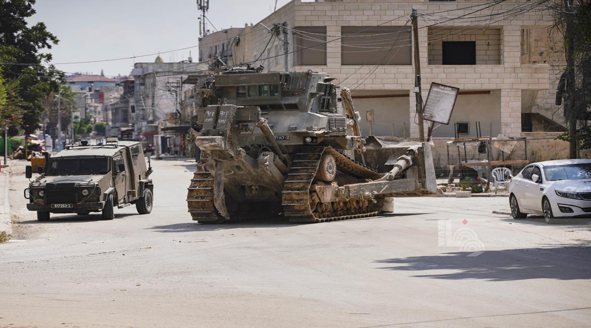 ويواصل الاحتلال دفع تعزيزات عسكرية برفقة جرافات الى مخيم جنين في حين تتواصل عمليات التجريف توسيع الشوارع وشق طرق جديدة في المخيم.