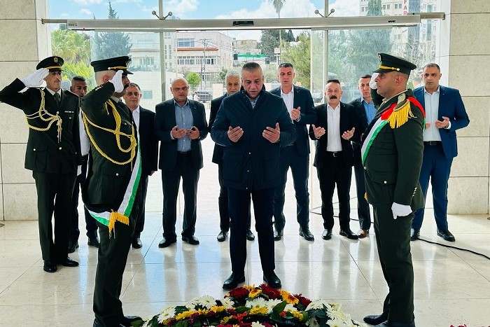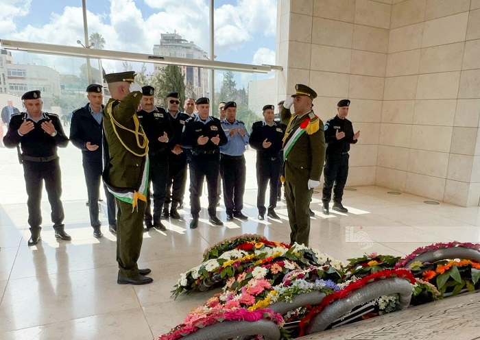 رام الله 30-3-2025 وفا- وضع عدد من قادة الأجهزة الأمنية، اليوم الأحد، أكاليل زهور على ضريح الرئيس الشهيد ياسر عرفات، بمقر الرئاسة في مدينة رام الله، لمناسبة عيد الفطر المبارك.