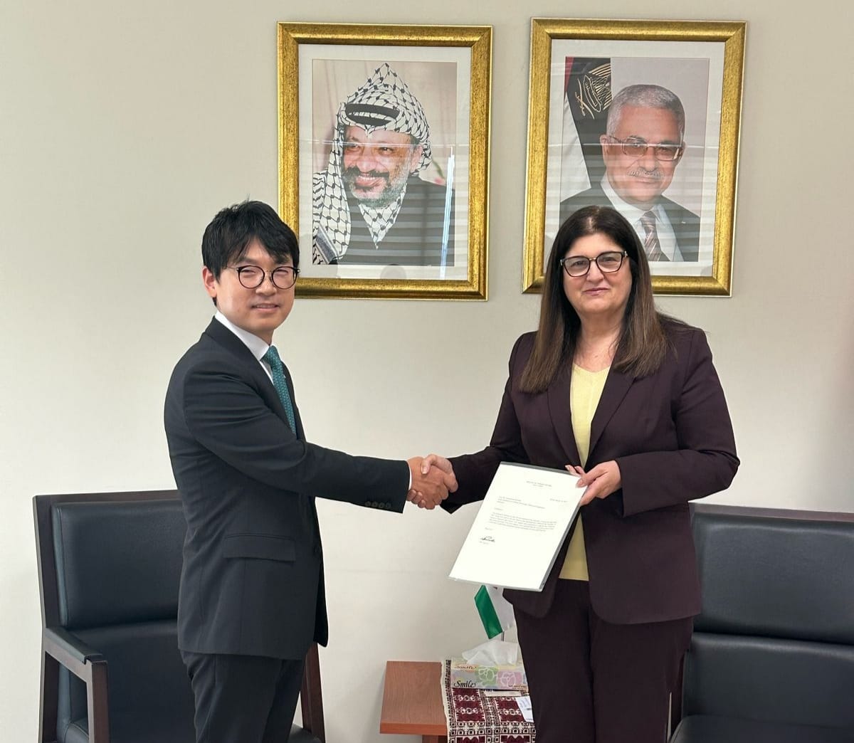رام الله 10-4-2025 وفا- تسلمت وزيرة الدولة لشؤون وزارة الخارجية والمغتربين فارسين شاهين، اليوم الخميس، في مقر الوزارة بمدينة رام الله، أوراق اعتماد ممثل جمهورية كوريا الجديد لدى دولة فلسطين يونغ كول كوه، وذلك بحضور رئيسة المراسم السفيرة عبير الرمحي، ورئيسة قطاع العلاقات الثنائية لشؤون آسيا وافريقيا والباسفيك السفيرة رنا أبو حاكمة.
