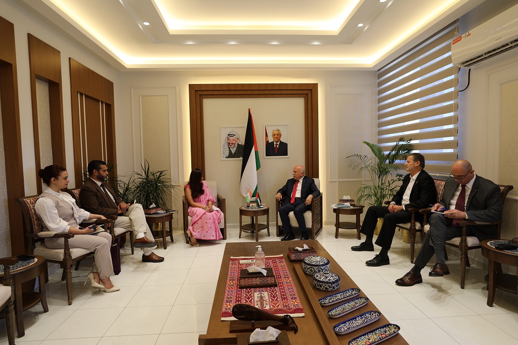وخلال اللقاء، استعرض الجانبان رؤية وزارة الاقتصاد الوطني في تشغيل مركز "تراثي" لتمكين المرأة والشباب في قرية سردا شمال رام الله، والذي تم تشييده بتمويل من الحكومة الهندية، إضافةً إلى مناقشة احتياجات المركز لضمان تحقيق أهدافه المنشودة.