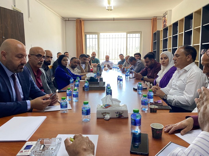 رام الله 14-7-2025 وفا-عقدت نقابة الصحفيين الفلسطينيين، اليوم الاثنين، لقاء تشاوريا للصحفيين المنضوين تحت شبكة الصحفيين الاقتصاديين، في مقر النقابة بمدينة رام الله، بحضور 30 صحفيا وصحفية من المهتمين بالشأن الاقتصادي وفعاليات من المؤسسات الاقتصادية الفاعلة في فلسطين، ونائب نقيب الصحفيين عمر نزال، وعدد من أعضاء الأمانة العامة للنقابة.