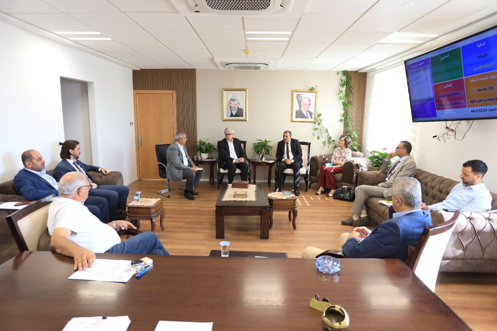 رام الله 6-11-2025 وفا- بحث رئيس سلطة المياه زياد الميمي، مع المدير التنفيذي للعمليات في الشرق الأوسط فيليب أورلينغ، ومديرة الوكالة الفرنسية للتنمية في فلسطين فيرونيك سوفا، ومدير البرامج أنطوان بوج، سبل تعزيز التعاون المشترك في مجال المياه.