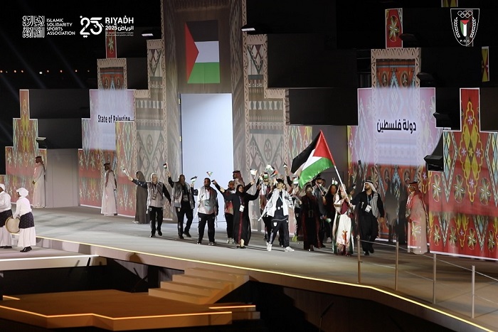 الرياض 7-11-2025 وفا- شارك وفد بعثتنا الرياضية الفلسطينية، في حفل افتتاح دورة ألعاب التضامن الإسلامي، الذي أقيم، اليوم الجمعة، في منطقة الجنادرية بالعاصمة السعودية الرياض، وسط أجواء احتفالية وحضور رسمي وجماهيري، إيذاناً بانطلاق النسخة السادسة من الدورة التي تستمر حتى 21 تشرين الثاني الجاري.